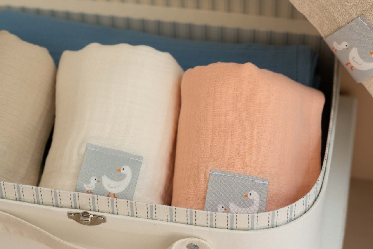 Duckyboo’nun hafif ve nefes alan müslin örtüsü, gün boyu yumuşak konfor sunar. Kundak, puset/beşik örtüsü, güneşlik ya da hafif battaniye olarak çok amaçlı kullanıma uygundur. Yıkandıkça daha da yumuşar, kolayca katlanır.