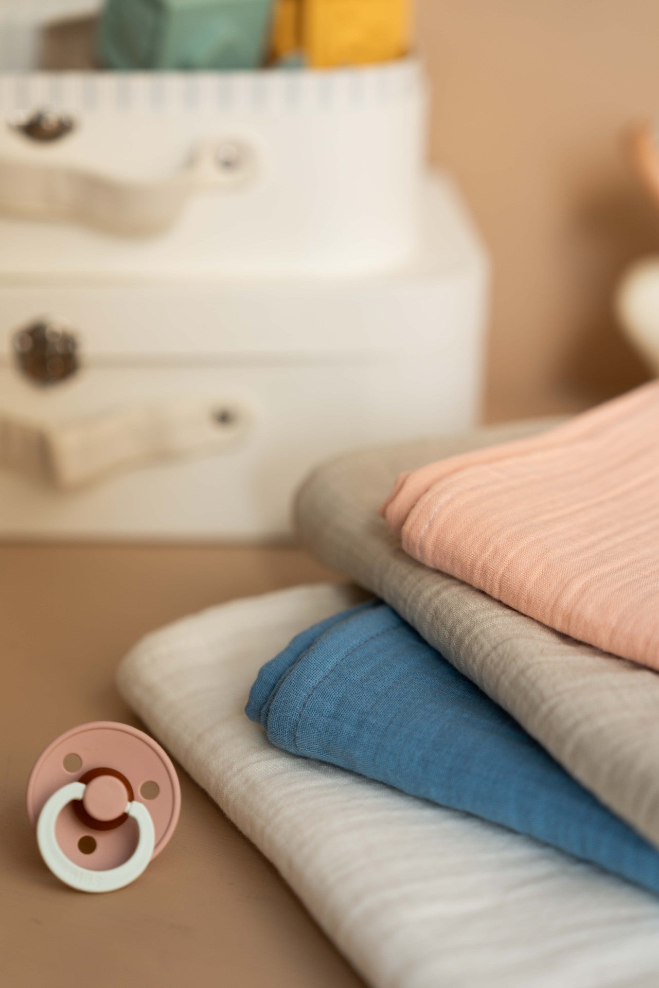 Teddy Beige - Bürümcük muslinin yumuşaklığıyla buluşuyor. Birbiriyle kolayca karışan bu sakin tonlar; hastane çantasından günlük gezilere, beşikten puset keyfine kadar her ana eşlik eder. Gün içinde örtünme